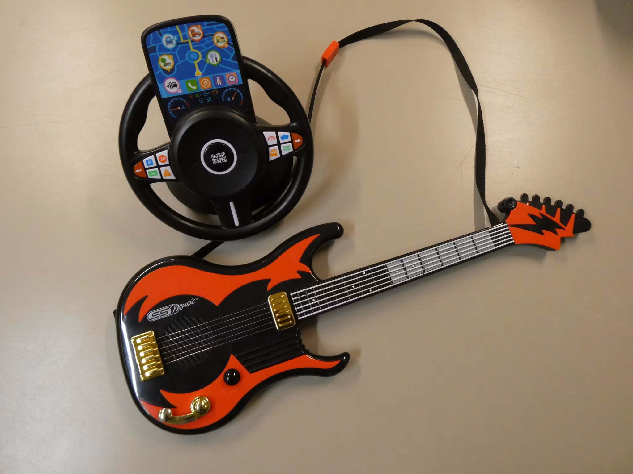 Rockegitar og bilratt med lyd 40,- På lager. Legg i handlekurv Produktbeskrivning Tilbakemeldinger Rockegitar og bilratt med lyd, batteridrevet. Gitaren måler 55 cm. Morsomme leker til barn.