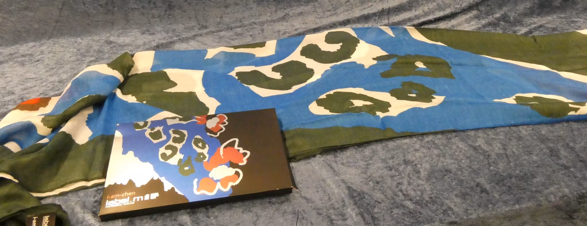 Skjerf ( I-am-chen) 50,- På lager. Legg i handlekurv Produktbeskrivning Tilbakemeldinger Skjerf fra merket i-am-chen, 100 % polyester, 190 cm langt og 70 cm bredt. Fine farger. Ubrukt i eske.